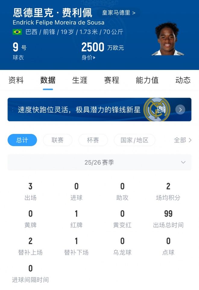 誰(shuí)能想到,半年前還被捧為“貝利接班人”、身價(jià)高達(dá)6000萬(wàn)歐的超級(jí)天才恩德里克,這么快就迎來(lái)了皇馬生涯的第一個(gè)“滑鐵盧”。